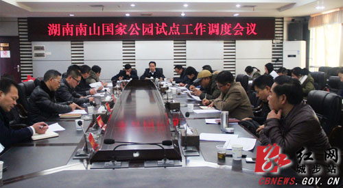 会上,“湖南南山国家公园试点筹备领导小组”的工作人员对湖南南山国家公园试点工作情况进行了汇报,相关单位负责人对国家公园试点工作中需要解决的问题进行了讨论。