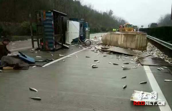 红网隆回2月7日讯(通讯员 成世德 何佳佳)2月6日7时30分许,在沪昆高速1280公里处,发生了一起货车侧翻事故,所幸没有人员伤亡,但车上所载的鱼苗因缺氧全部死了。
