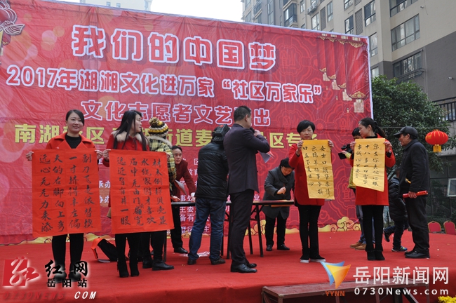 热情洋溢的器乐合奏《赛马》拉开演出帷幕。舞蹈《红红火火的中国》《舞动巴陵》《欢乐中国年》等,表现了社区居民昂扬向上的精神风貌和对美好生活的向往,让人如痴如醉;表演唱《夫妻观灯》、汤华光的二胡独奏《良宵》展示了社区居民多才多艺,令人赞不绝口。尤其是《猜灯谜、赠书法》有奖问答互动节目,带来了浓浓的元宵节味,岳州帝苑书法爱好者吴桂林和谭奇英两位老人通过现场观众猜灯谜的形式,免费赠写书法作品,吸引了不少观众积极参与,个个满载而归。