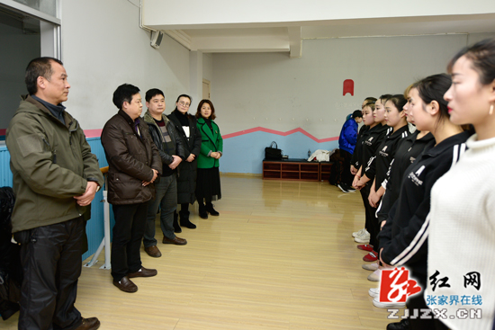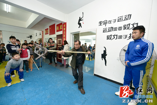在永定区尚武武术馆,检查组一行观看了开幕式节目《文鸡起武》(名称暂定)的排练表演,小演员们武起棍来个个苍劲有力,潇洒威武,充满了“精气神”。该武术表演结合了土家族钯、牛交叉的元素,反映了传统土家族人的节庆文化。
