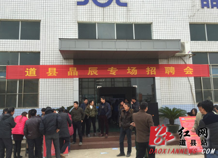 红网道县分站2月10日讯(通讯员 张富云 李华忠)2月9日,湖南省道县工业园的电子产业信息园区内人头攒动,道县晶辰电子科技有限公司2017年专场招聘会正在进行,这是道县工业园区今年以来举办的第二场招聘会。
