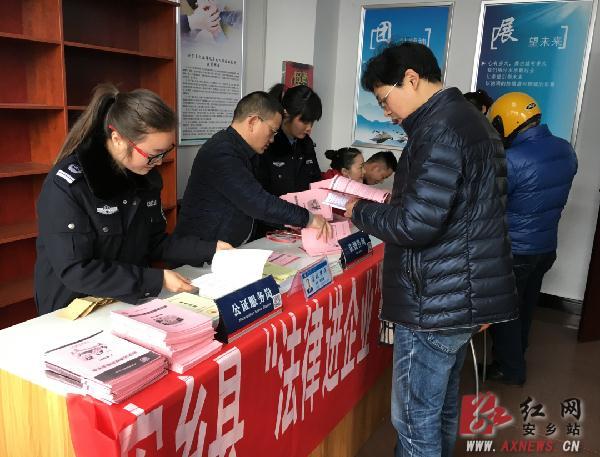 红网安乡县分站2月10日讯(分站记者 邓敏 通讯员 廖益松 蔡欢)为增强就业人员的法治观念和维权意识,也为企业在“人才入口”环节预防可能发生的各种劳资纠纷,县综治办、县司法局以新春用工招聘会为契机,组织律师、法律援助志愿者和公证员为现场招聘单位和求职人员提供法律帮助,开展法治宣传。