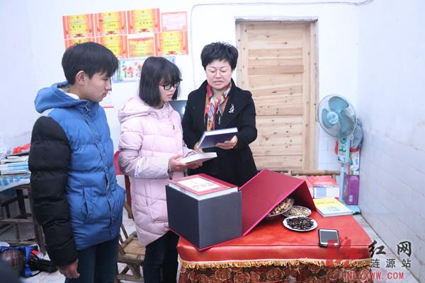 涟源市委书记谢学龙为小何兄妹送去书包、书籍等学习用品