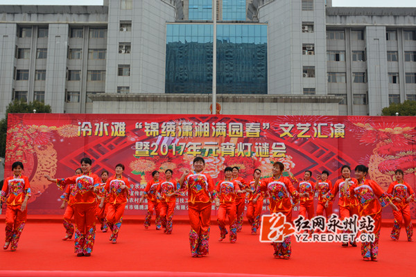 红网永州分站2月11日讯(分站记者 成文杰)金鸡闹春晖,元宵闹新年。2月11日上午,永州市冷水滩区“锦绣潇湘满园春”文艺汇演暨2017年元宵灯谜会在区政府广场举行,精彩纷呈的文艺演出和趣味十足的灯谜竞猜活动,吸引众多市民观看并参与,全场笑声与掌声不断。