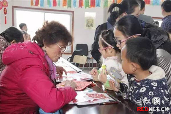 湘潭市图书馆组织“迎新春·送春联·剪窗花”活动。