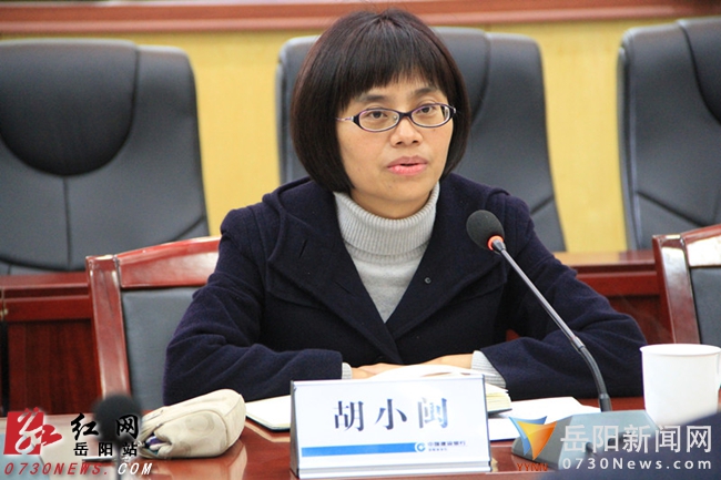 调研会上,建行岳阳市分行行长刘星介绍了该行2016年工作情况和2017年主要工作措施,并就如何创新方式支持地方经济建设、改善区域金融生态环境提出了相关建议。胡小闽对建行岳阳市分行2016年取得的各项成绩给予了充分肯定,她希望该行充分发挥自身优势,围绕“管好存量、做大增量”,进一步加大金融产品创新力度,设计具有针对性的特色产品,以更好地服务地方经济建设和社会发展。