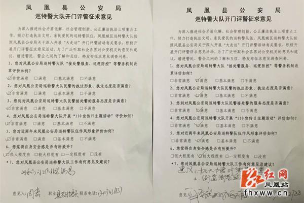 红网凤凰县分站2月16日讯(分站记者 谭群周 通讯员 王赟)“您们对当前凤凰社会治安状况是否满意?”,“我们热忱希望大家积极参与到开门评警活动中,欢迎提出宝贵的意见和建议”。为进一步知民心、顺民意,构建和谐警民关系,2月15日,湖南省凤凰县公安局巡特警大队扎实开展“开门评警”活动,民警深入社区、居民区、人员聚集场所,征求广大人民群众对改进公安工作的意见和建议。