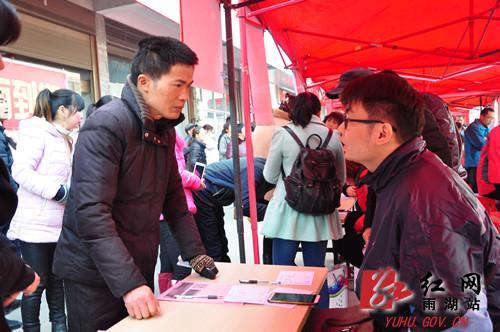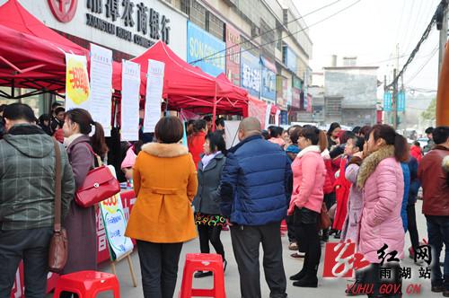 红网雨湖区分站2月16日讯(分站记者 胡海兵 通讯员 刘雄)为进一步落实湘潭市2017年精准扶贫暨“春风行动”就业援助工作,做好辖区失业人员和就业困难人员就业工作,更好地服务企业,2月14日,由湘潭市人社局主办、雨湖区人社局承办、姜畲镇政府协办的招聘会在姜畲镇湘潭农商银行前坪街道举行。