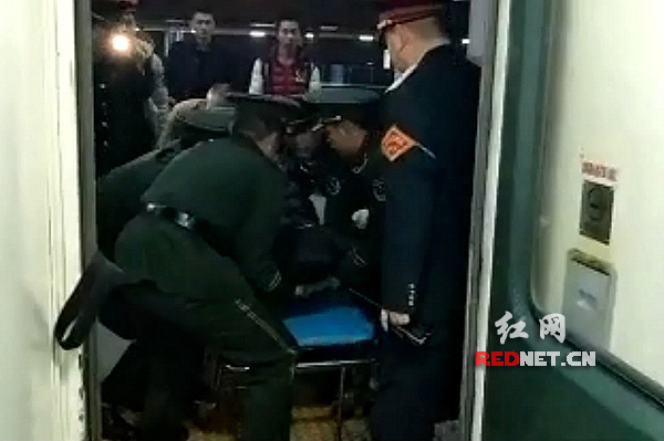 21:10,刘女士夫妇终于顺利到达月台,但是新的问题又摆在眼前。细心的官兵们发现,由于列车车门和内部转弯比较狭窄,钢制的担架根本无法进入车厢。眼看列车已经进站,上半身受创的刘女士身体又不能屈身移动,官兵们急中生智,团团将刘女士围在中间,用手臂协力把她托起,在确保身体平直的情况下向车厢内移动。手臂形成的人体“担架”十分平稳,很快,刘女士就顺利进入了卧铺车厢。