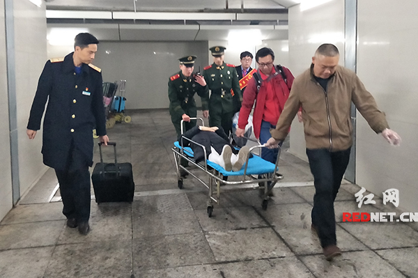 经了解,原来张先生夫妻二人年前从陕西来到常德亲戚家过年,期间刘女士遭遇车祸,导致胸骨骨折、胸椎压迫性骨折,经抢救才保住性命。手术后,因刘女士水土不服导致恢复缓慢,加上异地治疗费用太高,在医生的建议下,夫妻二人决定动身返回渭南。但是,此时距离刘女士手术刚刚20天,重伤未愈的她根本不能下地,只能躺在担架上等待帮助。返乡之路碰上春运高峰,张先生无奈,只能向车站寻求帮助。