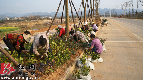 目前正对道路两边的美化绿化进行扫尾工程。昔日杂草丛生、水土流失的乱象不见了,取而代之的是绿树花草环抱的沙滩公园、桂花园、垂柳园、樱花园等生态景观,以“一条公路一条风光带”的新风貌迎接省市春季乡村旅游节在安仁举行。