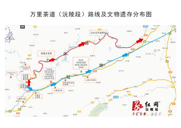 万里茶道沅陵段路线及文物遗存分布