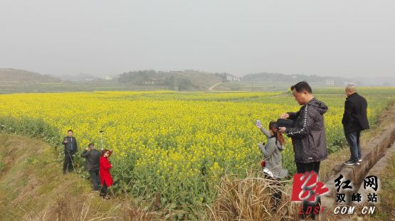 红网双峰县分站2月20日讯(分站记者 龚闯 通讯员 黄海洋)随着气温的升高,油菜花儿竞相开放,湖南省双峰县锁石镇万亩油菜基地一天天变得金黄灿烂。2月19日,春风和煦,锁石油菜基地上迎来了开春的第一波游客高峰,有骑着自行车的小伙子,有驾着小车的年轻姑娘,有活蹦乱跳的小孩童,深吸一口花香,再摆个pose,欲把这份美丽带回家。
