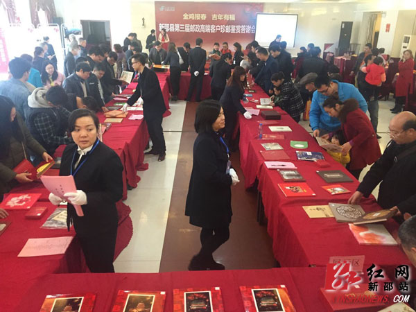 红网新邵县分站2月20日讯(分站记者 隆清泉 通讯员 李一定)2月19日,“金鸡报春、吉年有福”暨湖南省新邵县第三届邮政高端客户珍邮鉴赏答谢会隆重举行。本次活动旨在弘扬我国的传统文化,推动集藏文化向前发展,为集藏爱好者搭建一个相互学习的交流平台。百余名集邮爱好者纷至沓来,争相目睹各种精品邮票、钱币精品,同时为自己的集邮爱好“添砖加瓦”。