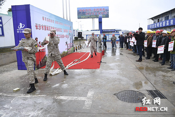 湖南省长沙市望城区在建工地农民工“消防夜校”授牌仪式暨2017年复工消防第一课活动现场。