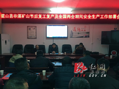 红网蓝山县分站2月22日讯(通讯员 郝明峰 田文杰 黄宇翔)2月22日,湖南省蓝山县安监局组织召开非煤矿山节后复工复产及全国“两会”期间安全生产工作动员会。全县各非煤矿山监管人员和企业主要负责人、安全员参加会议。