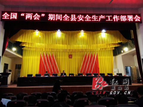 红网蓝山县分站2月24日讯(通讯员 彭明峰 邓瑞辉 王文彪)2月23日下午,湖南省蓝山县委常委,常务副县长聂朝飞召集各乡镇党委书记和乡镇长,县直各部门主要负责人等140余人召开专题会议,部署全国“两会”全县安全生产工作。