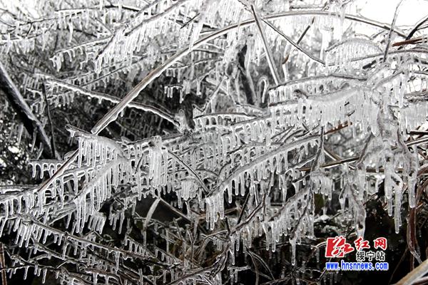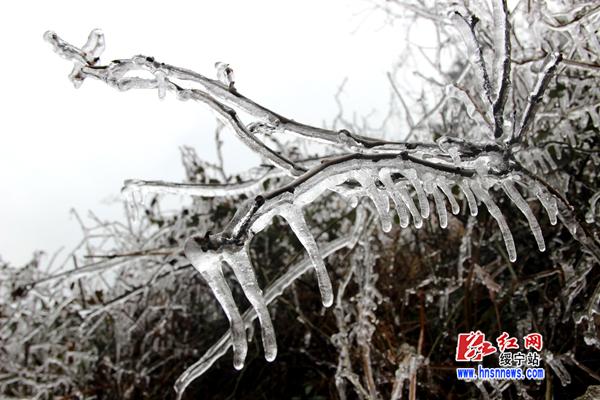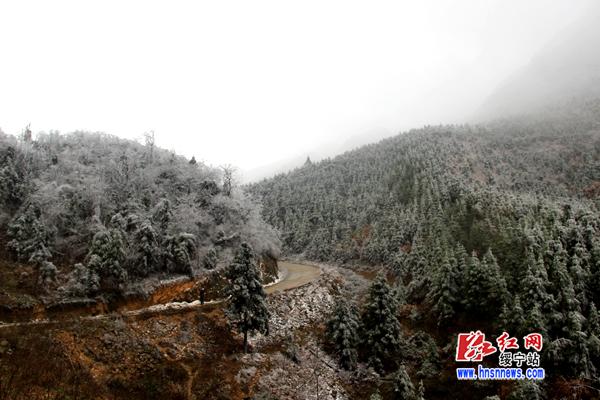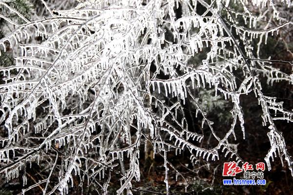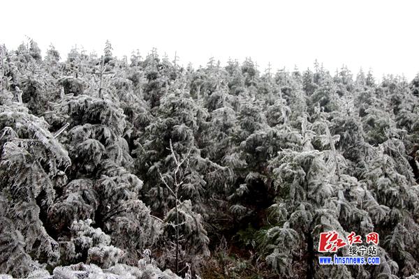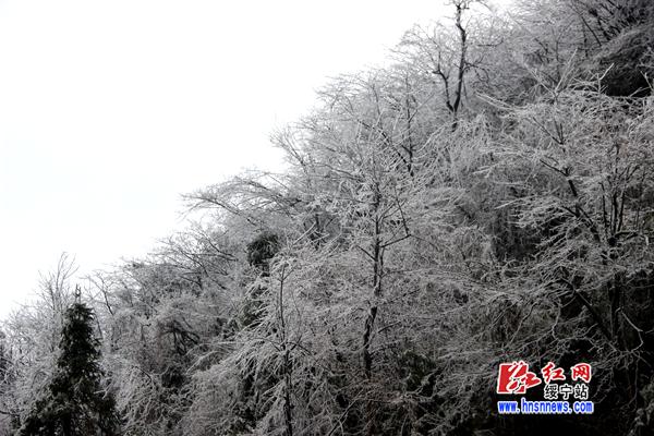 红网绥宁县分站2月25日讯(分站记者 向云峰 杨汐)连日来,受寒潮天气影响,绥宁县气温骤降,许多山区出现雾凇美景。2月24日,在绥宁县红岩镇泡桐村一个叫“分水岭”的地方,晶莹的雾凇将山体妆点成如梦如幻的仙境。