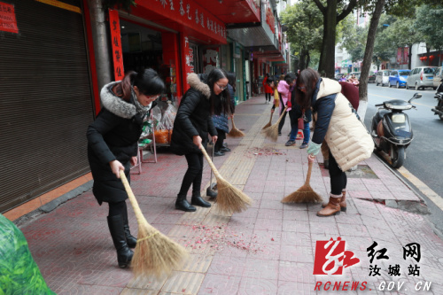 广大干部群众加入到义务清扫行列