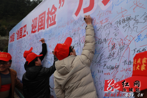 志愿者们纷纷在横幅上郑重签名