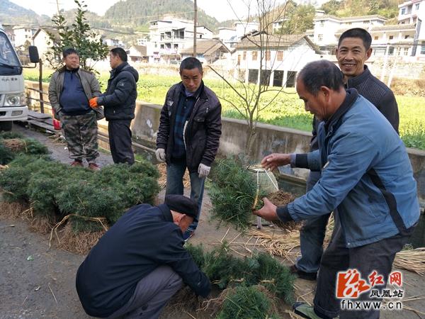 村民在购买杉木树苗。