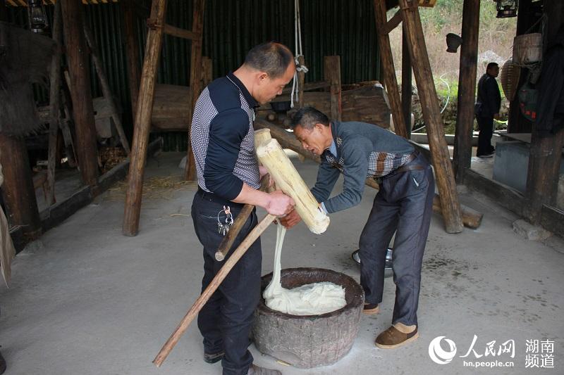 人民网慈利2月27日电 古朴的民居、原始的榨油方式、纯手工打出的糍粑飘出诱人的香气……走进张家界市慈利县重点扶贫项目“禾田居山谷”内,一股浓郁的民俗气息扑面而来。正忙着向游客展示传统民俗技艺的“禾田居山谷”员工,均是周边乡村的贫困户,随着慈利县不断升温的旅游热度,他们的生活也火了起来。