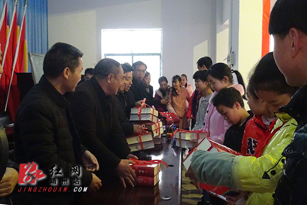 县政协委员武方志、黄靖平等为同学们捐赠学习用品