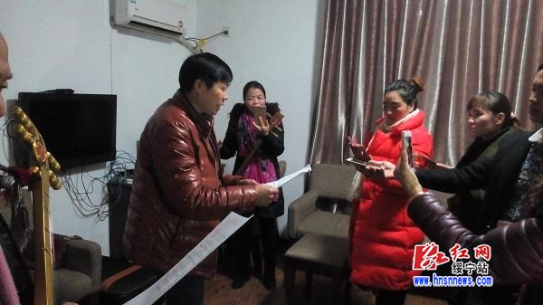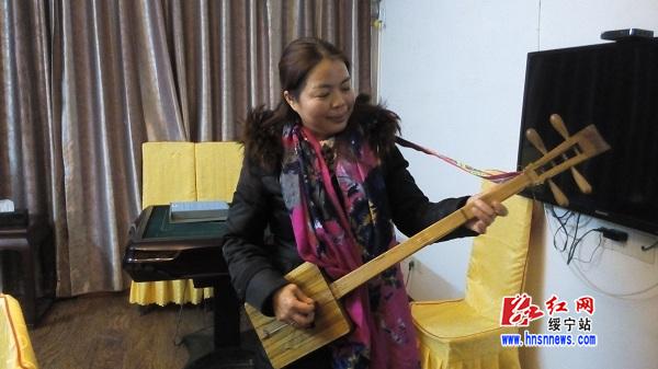 “几个人弹弹唱唱很开心,能够充实自己。”长铺子苗族侗族乡村民何秀华学习侗族琵琶一个星期了,觉得这是个益事。她认识韦老师是在2016年9月7日阿苗千千在绥宁举办的感恩会上,韦老师边弹边唱给她印象极深。后来在满顶界公园散步又遇到韦老师,向前请教,临时学唱了几句侗歌。这回听说韦老师免费招生学习侗乐,便约朋友一起来了。