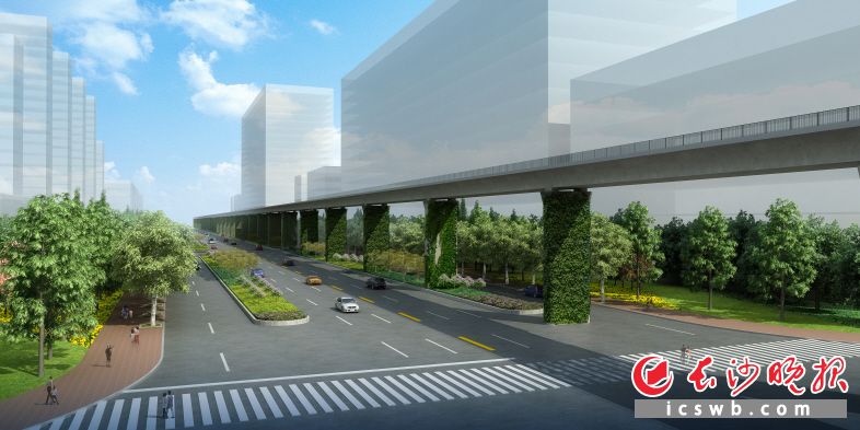 南接中意一路,北接长沙绕城高速,提质改造总长为1.5公里。坡体将用栽植竹子进行遮挡处理,道路外侧1.5米宽绿地种植开花灌木及绿篱,道路外侧围墙将绘制成文化宣传墙,行道树进行双排种植。