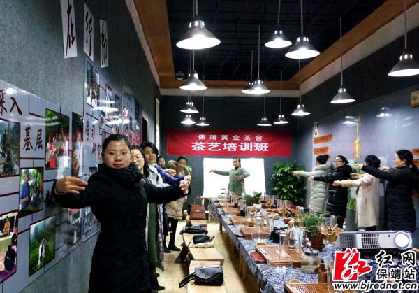 按照保靖黄金茶舍2017年工作计划,年内将开展茶艺培训二十期,而且将有计划地进入到机关、社区、校园、警营、农村、企业,特别是广大茶农,茶舍将组织茶艺师深入基层为茶农进行上门培训,不仅让茶农会种茶、制茶,而且还能懂茶、会喝茶。活动旨在让更多的人了解保靖黄金茶,了解保靖黄金茶文化,人人成为保靖黄金茶的宣传员,让保靖县成为真正的黄金茶之乡。
