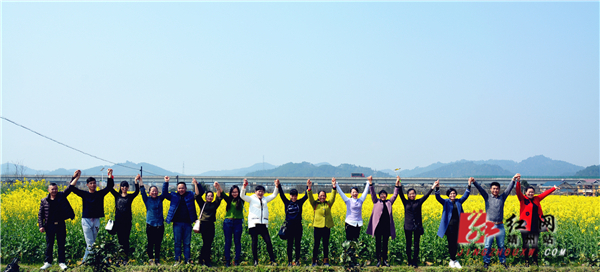 靖州武陵城酒店老家厨的员工组团前来赏花。 陈俊名 摄