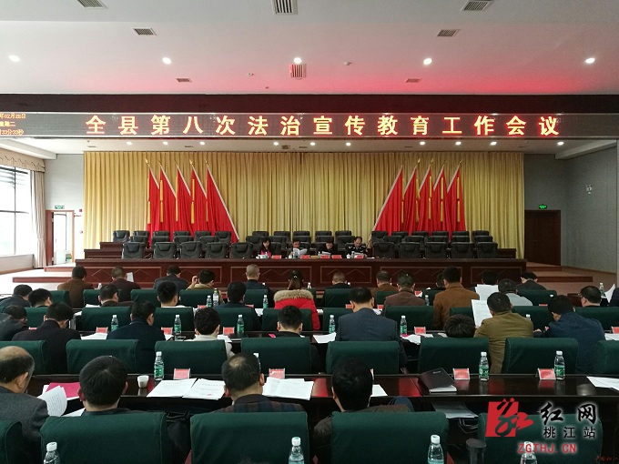 红网桃江县分站3月2日讯(通讯员 陈倩 龚芬)2月28日,桃江县召开第八次法治宣传教育工作会议。县委常委、政法委书记刘武出席,县人民政府副县长、县公安局局长郭清平主持并作报告,县政协副主席任小琳宣读“六五”普法先进表彰决定。