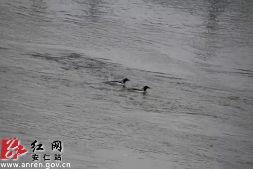 红网安仁分站3月4日讯(通讯员 刘宇华 何炳文)3月1日-3日,湖南省安仁县林业局工作人员在永乐江国家湿地公园城郊河段发现了6只长相特别的鸟类,经湖南师大生命科学研究院专家鉴定,该鸟类属国家一级重点保护动物中华秋沙鸭,与大熊猫、华南虎齐名的国宝,全球数量仅存1000余只,是IUCN国际濒危级物种。