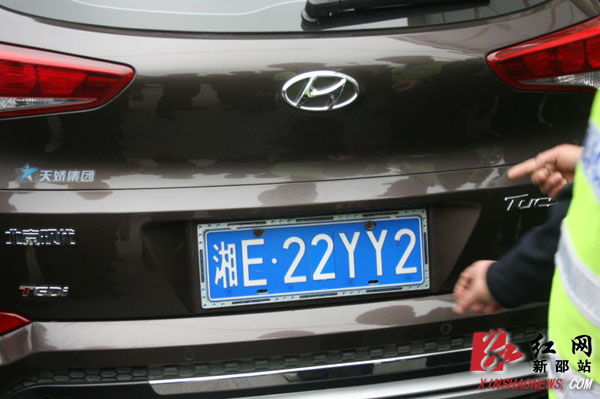 3月3日下午,县交警大队副大队长廖丰华带队执勤时,在银三角地段发现了一辆疑似套牌车。经仔细检查,车辆号牌有一块长方形带有磁性的铁片贴放在原车牌上,造成了原号牌“湘E27YY2”中的“7”改为了“2”,将车牌伪造成了“湘E22YY2”。