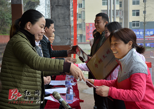 靖州县政协常务副主席禹容娥对获得省、市、县荣誉的先进单位和先进个人予以通报。大会对“靖州县巾帼文明岗”“靖州县示范妇女之家”“靖州县最美家庭”的典型代表进行颁奖。