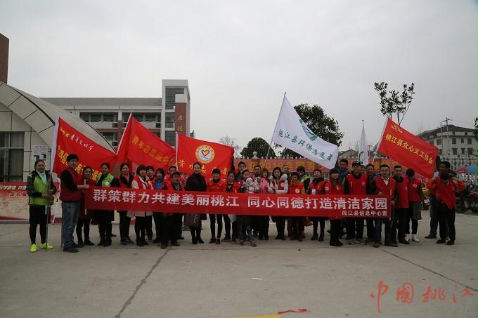 3月3日下午,桃江县举办“全民学雷锋·共建文明卫生县城”启动仪式暨卫生清扫和市民承诺签名活动。团县委、近桃社区、环保志愿者协会、众心志愿者协会、资水志愿者协会、桃江县信息中心电子政务服务队、近桃小学三四五六年级16个班的学生合计1300余名志愿者参加活动。
