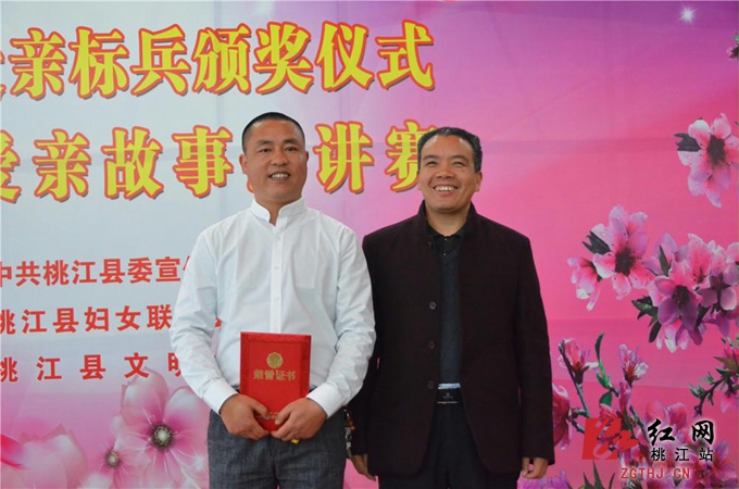 活动还对詹翠华等20名孝老爱亲标兵进行表彰,以弘扬传统美德,褒扬真善美,传播正能量。县委常委、宣传部长胡国清希望孝老爱亲标兵们继续发挥模范带头作用,为践行社会主义核心价值观做出更大贡献。他同时号召桃江县广大干部群众以其为榜样,学习孝敬父母、关心子女、团结邻里的家庭美德,身体力行,全面掀起学榜样、做榜样的热潮,树立良好家德家风,建设幸福家庭,为全面建成小康桃江做出积极贡献。