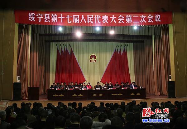 红网绥宁县分站3月7日讯(分站记者 向云峰 黄生勇)3月7日上午,湖南省绥宁县第十七届人民代表大会第二次会议在县影剧院开幕。来自全县各条战线的县人大代表肩负全县人民的重托,承载着人民的心声,怀揣着百姓的希望,汇聚一堂,依法履职,共谋改革发展大计。