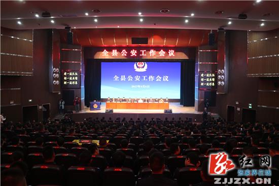 会上,副县长、县公安局局长屈辉作公安工作报告。2016年,全县公安机关在县委、县政府和市局党委的坚强领导下,紧紧围绕“三个一流”目标,务实笃行、奋力争先、乘风破浪、捷报频传,“猎狐行动”获公安部、省厅表彰;打黑除恶、“三实”基础信息采集、禁毒工作、规范执法获全省先进单位;“四比四看”竞赛、党风廉政建设获全市先进单位;绩效评估获全县先进单位;涌现出全国优秀人民警察候选人唐斌等一批先进典型;重大涉稳事件预警率达100%。推行“三大中心,六大片区”警务改革,打造以合成作战、治安防控、警察公共关系三中心为依托,派出所“1+N”联勤联动为辅助的新型警务机制。组建全省首支县级旅游警察大队和全市首个县级巡特警大队、政府专职消防队,在全市率先新建驾驶人科目一考场和推出轻微交通事故快处快赔机制,创建了全省首个交通事故动态处理平台。新建合成作战平台,启动电子围栏建设,构建了“大数据”大厦。推进“天网”提质扩容、市际电子卡口建设,扎紧了两道24小时不休眠防控圈。