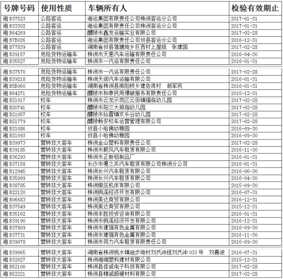 红网株洲分站3月8日讯(分站记者 龙琦 通讯员 彭晚华)8日,记者从株洲市公安局交警支队获悉,“百日会战”行动集中整治期间,交警部门对重点车辆逾期未检验交通违法行为也将进行严查,并向媒体曝光36辆未按期进行车辆年度检验的重点车辆,提醒相关单位和驾驶员尽快进行车辆年检。