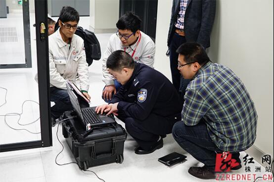 民警使用信息安全等级保护检查工具箱对中车株洲电力机车有限公司机房进行扫描。