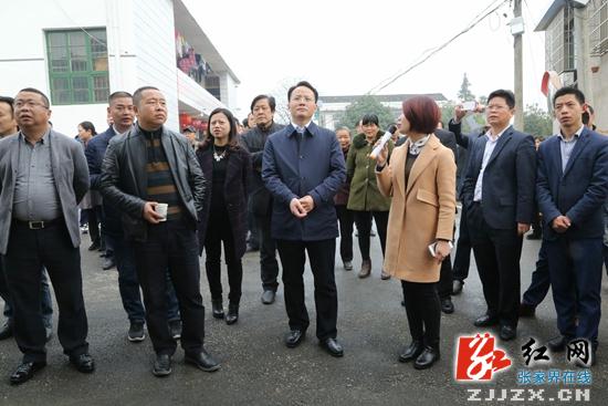 武陵源区委副书记、区长郑小胡(左三)带领考察团参观浏阳市官渡镇中州屋场资源回收环保屋