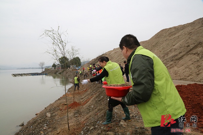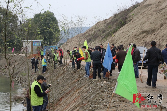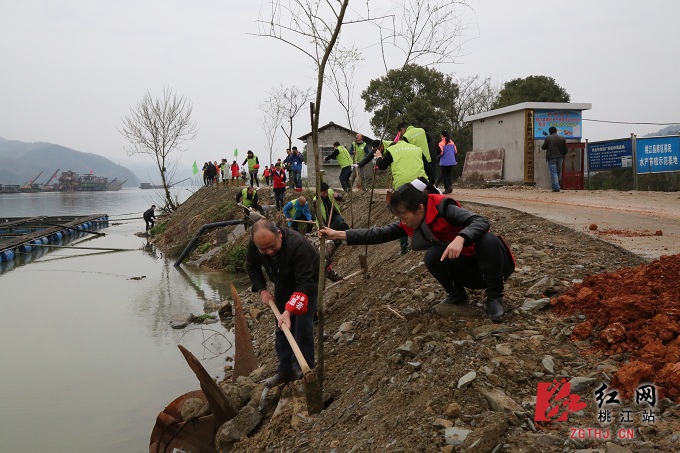 红网桃江县分站3月14日讯(通讯员 符蓓婧 刘美玲)“扶正树苗,填土压紧,透水定根。”这是湖南省桃江县林业局技术人员讲解金丝垂柳种植技术的一个场景。