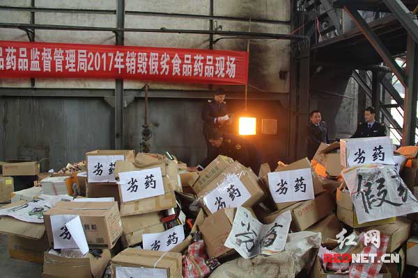这次销毁活动现场选择在中南制药有限公司锅炉房,采取封闭焚烧、无害净化的环保方式进行。当天上午,该局工作人员将2016年查收的部分假劣食品药品集中装车,运送至销毁现场,由工作人员投入到封闭的锅炉内进行焚烧销毁。