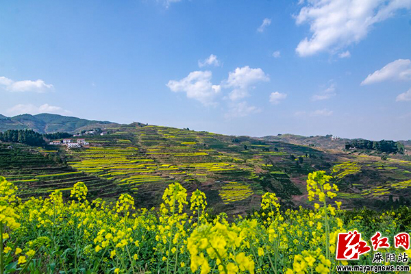 麻阳县郭公坪镇岩大门村,农家田地里油菜花开正茂。摄影:刘林