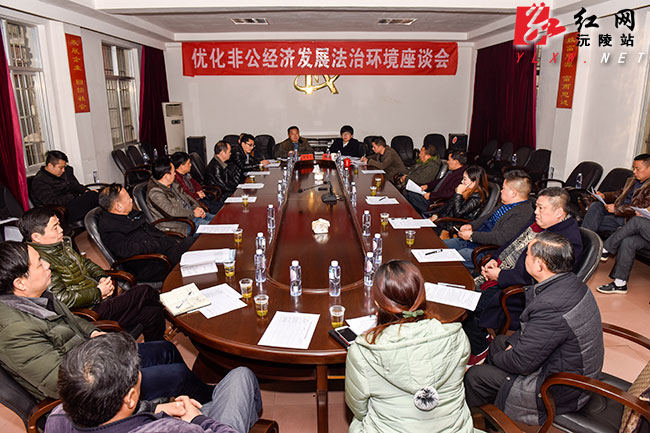 红网沅陵县分站3月18讯(通讯员 瞿宏红)3月16日,沅陵县工商联召开优化非公经济发展法治环境座谈会,22位非公企业家应邀参加。县政协副主席周高兴,县政协副主席、县工商联主席李丽娟,县工商联党组书记、副主席李宏林,县工商联副主席代龙旺等出席会议。