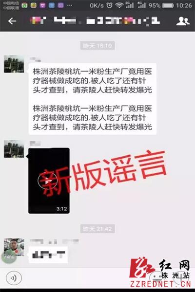 该消息出现后,茶陵县公安局及时介入,会同卫生计生、环境保护局等部门联合对此事进行调查,通过调查核实,已查明该视频系茶陵县环保局于3月17日在查处枣市镇岩口村一处收购处理医疗废料塑料的黑窝点时,围观群众所拍摄,网传“加工粉丝送饭店”之言论与事实不符。