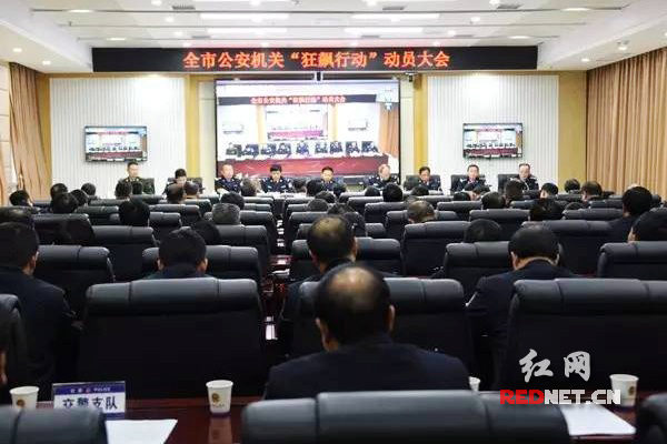 会议由邵阳市公安局党委委员、副局长肖国清主持,邵阳市公安局党委委员、刑侦支队长朱邵武宣读“狂飙行动”工作方案。各县市区公安局局长、局属各部门负责人递交“狂飙行动”责任状。