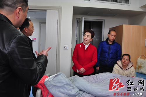 湖南省民政厅党组书记、厅长唐白玉(中)正在康乃馨老年病医院了解养老服务情况。高亮 摄