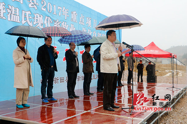 新田县委副书记易先平在仪式上讲话并宣布重点项目开工。县委常委、常务副县长王名扬主持开工仪式。开工仪式上,县工业园党工委书记、县畜牧局负责人分别就如何支持配合项目的开工建设作了表态发言。
